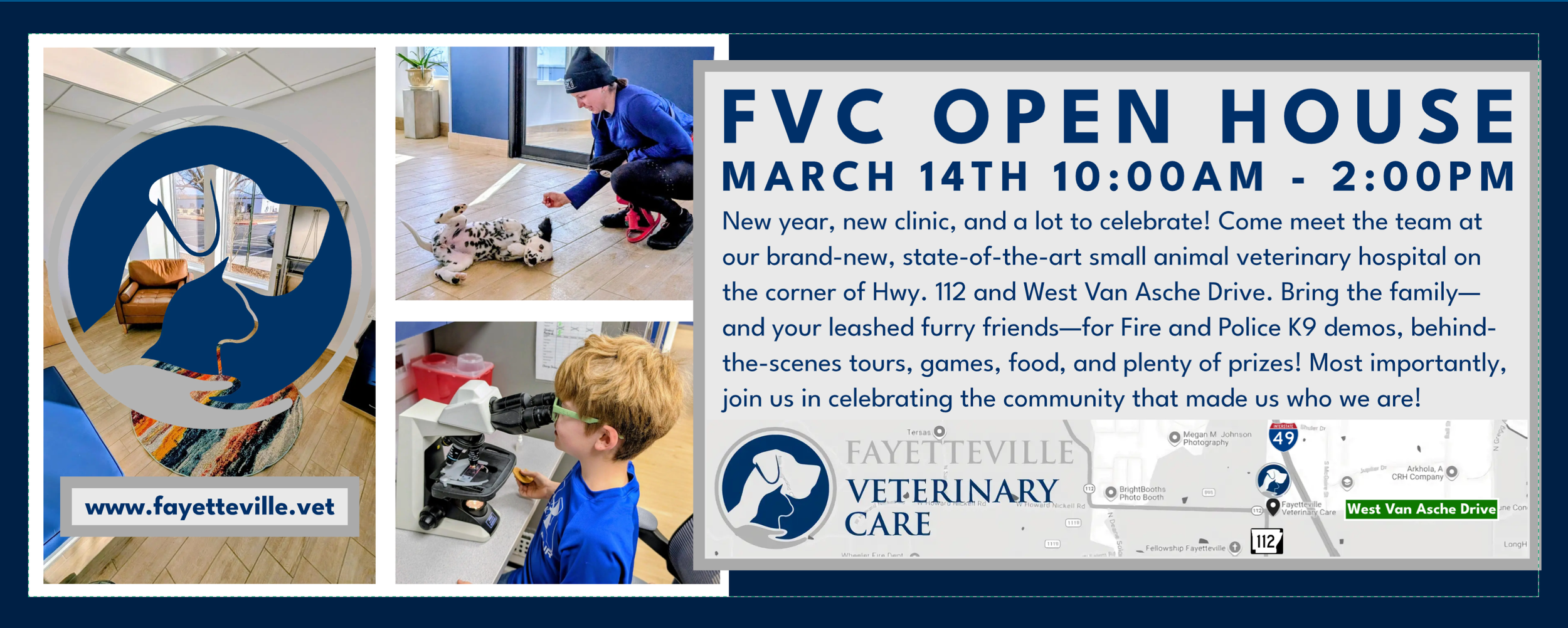 Don’t miss this opportunity to Meet the Fayetteville Veterinary Care Team at our March 14, 2026 Open House! Mark your calendar for FREE goodies, including Purina-sponsored dental products and pet-parent swag like bandanas, leashes, lanyards, poop bag dispensers, sling packs, golf umbrellas and more! Plus, thanks to our friends at Boehringer Ingelheim, we’ll be giving away dental treats and other promotional merch!