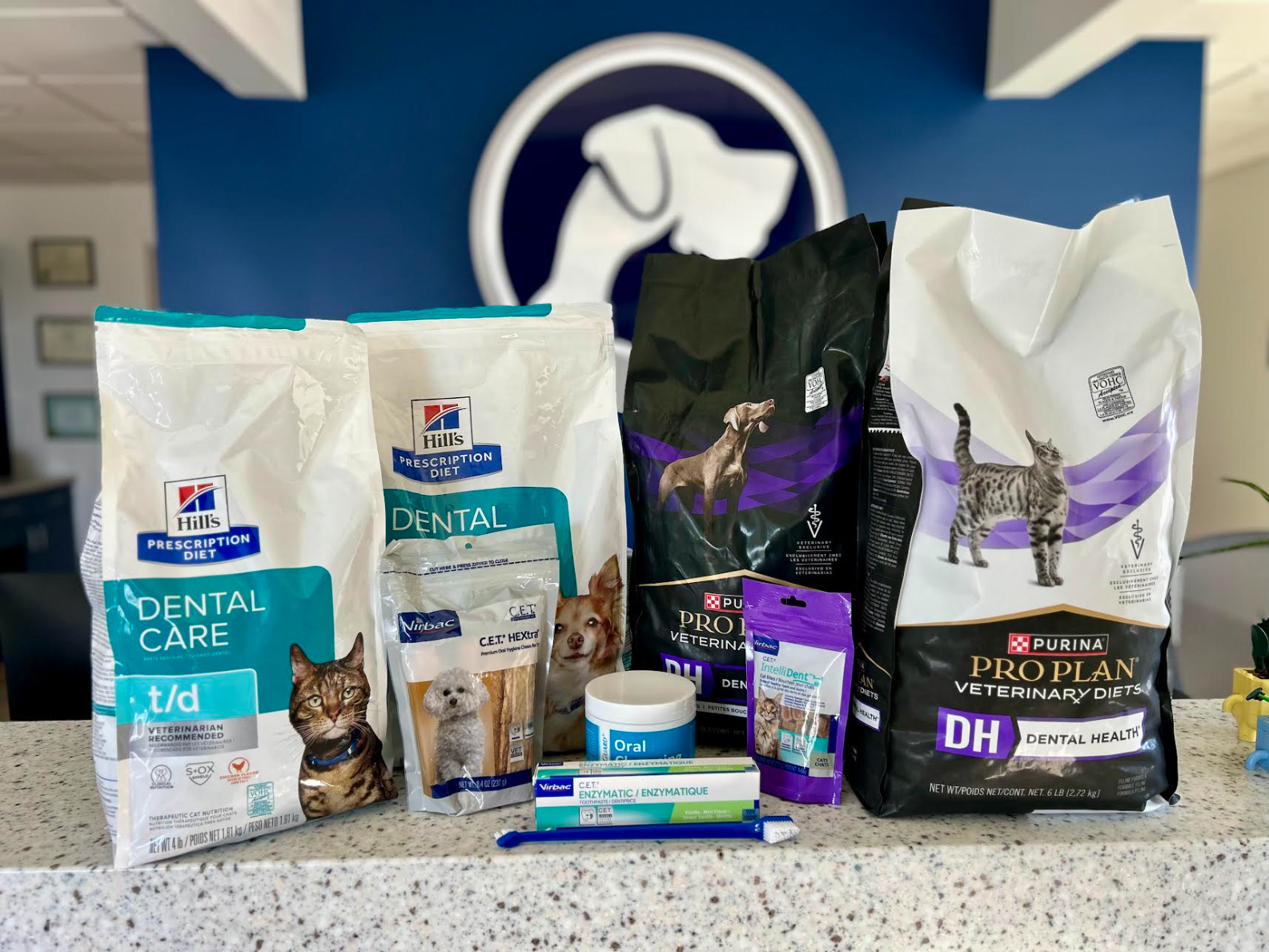 When it comes to dental diet foods, we’re big fans of Hill’s Science Diet and Purina Pro Plan.