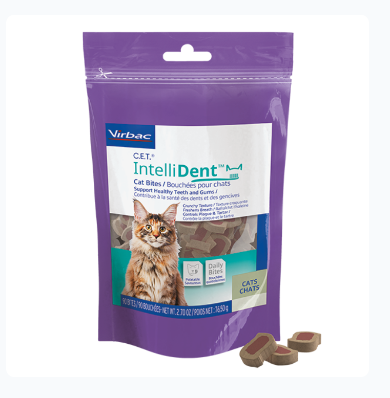 Dental treats are a great addition to supplement your pet’s at-home oral hygiene routine. They function much like dental diets, with a unique structure and special ingredients to freshen breath and reduce plaque and tartar buildup.