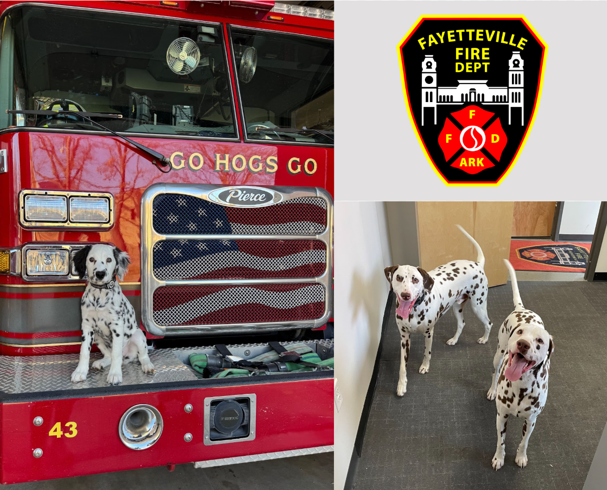 For decades, Dalmatians have served alongside firefighters at the Fayetteville Fire Department, supporting public safety and community outreach efforts. Higbee and Philli, along with Ash —who is currently in training to join them — continue that proud tradition by helping provide engaging, visual demonstrations that make important fire safety lessons easier for children to understand. During Fire Prevention Month each October, the dogs visit schools throughout Fayetteville, assisting firefighters in spreading important safety messages to students across the community.